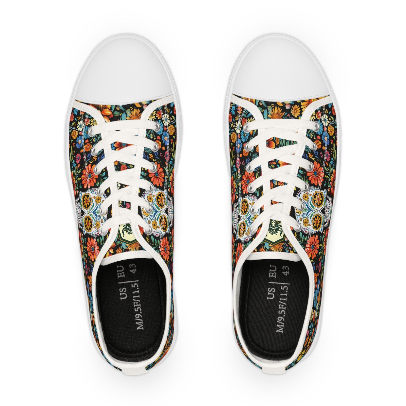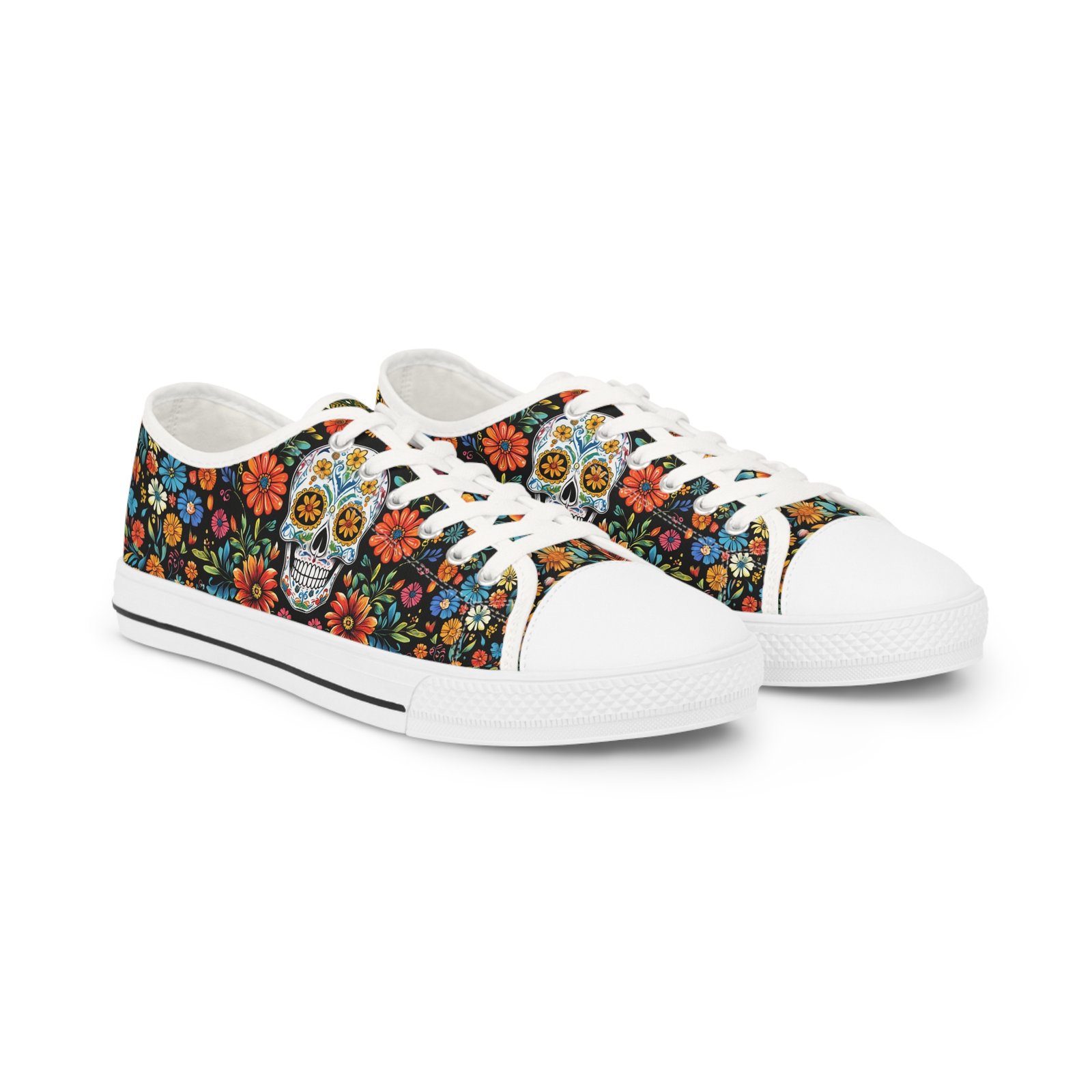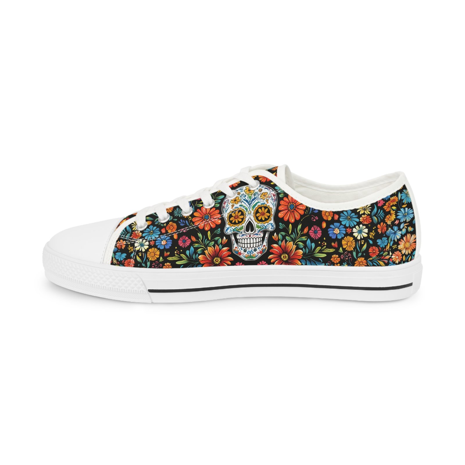 Step boldly and stylishly into the world with these Día de los Muertos-inspired sneakers. Perfect for standing out at festivals, casual outings, or simply adding a touch of cultural charm to your everyday look!
