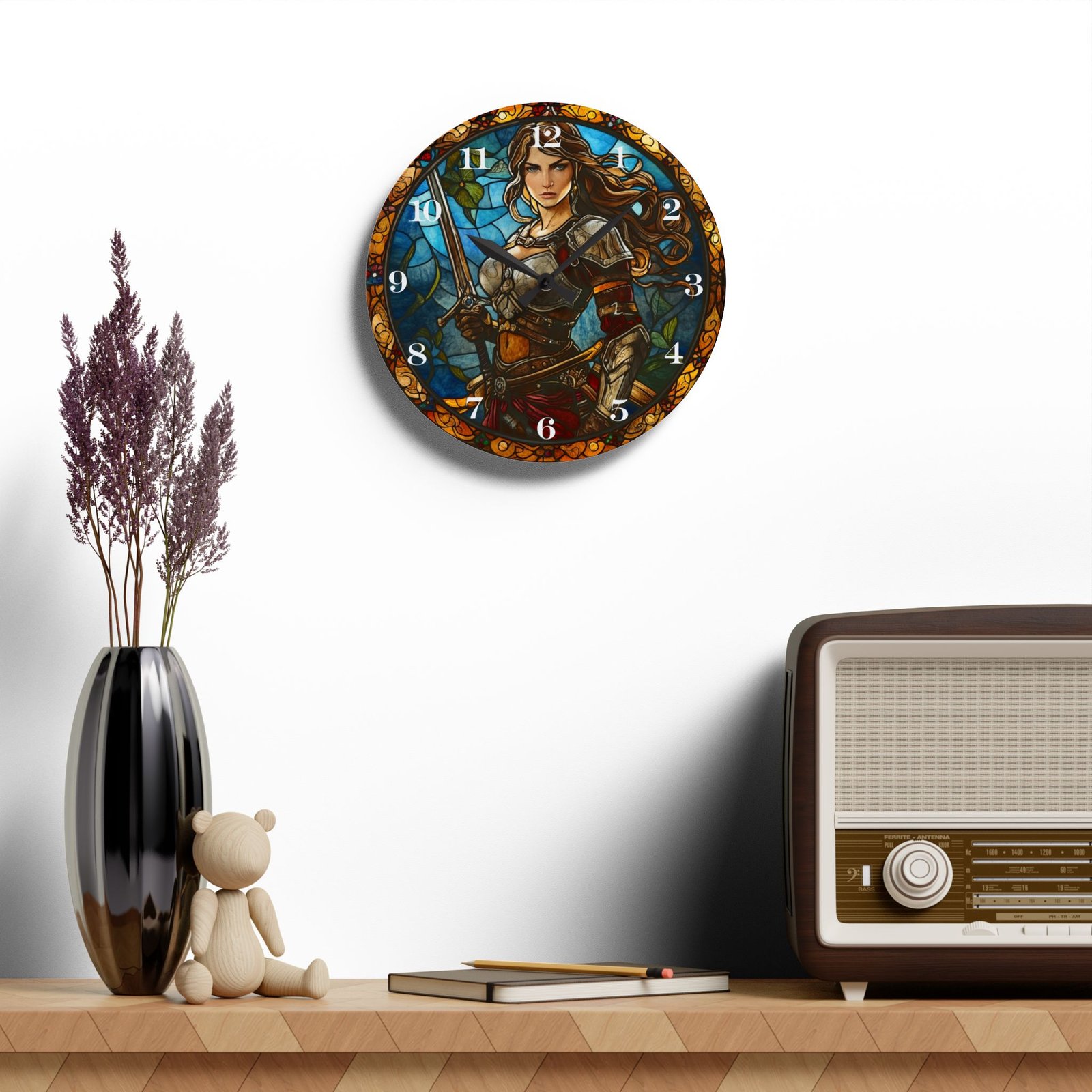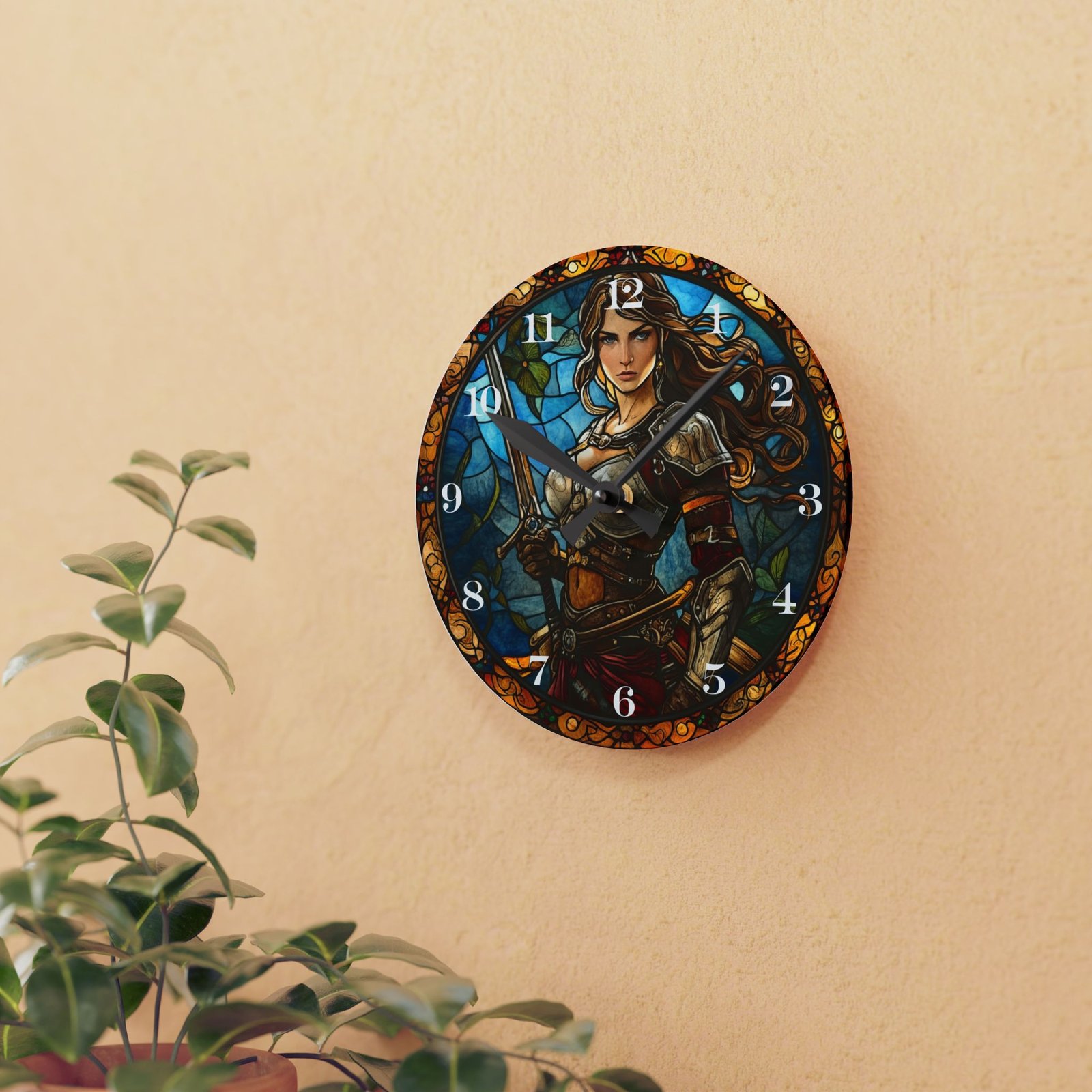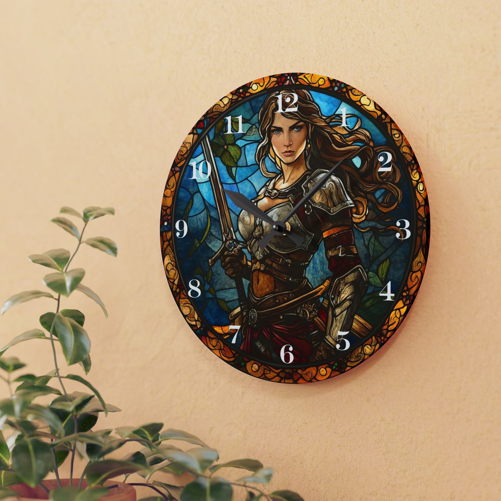 Seize Every Second with Our Stained Glass-Style Warrior Clock!