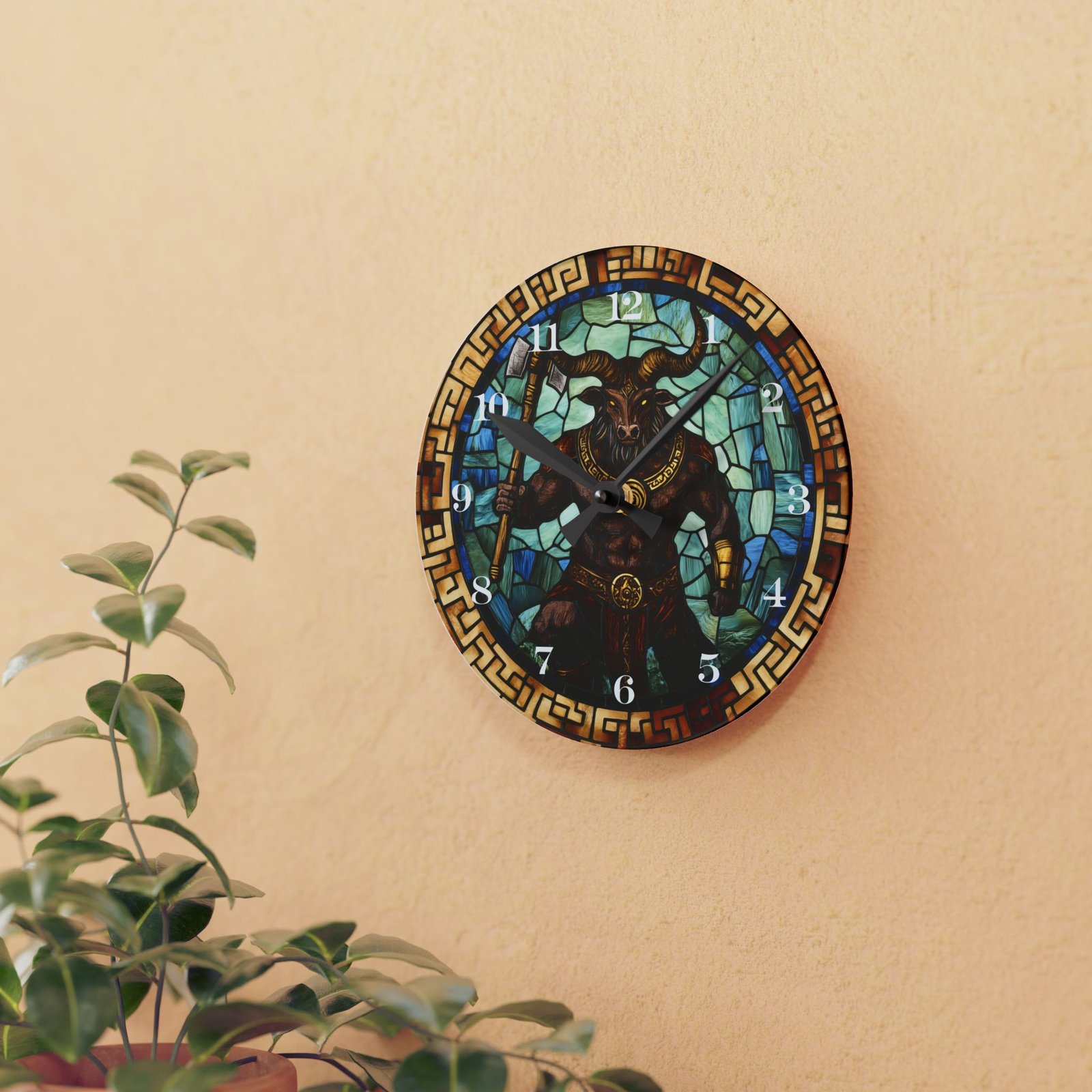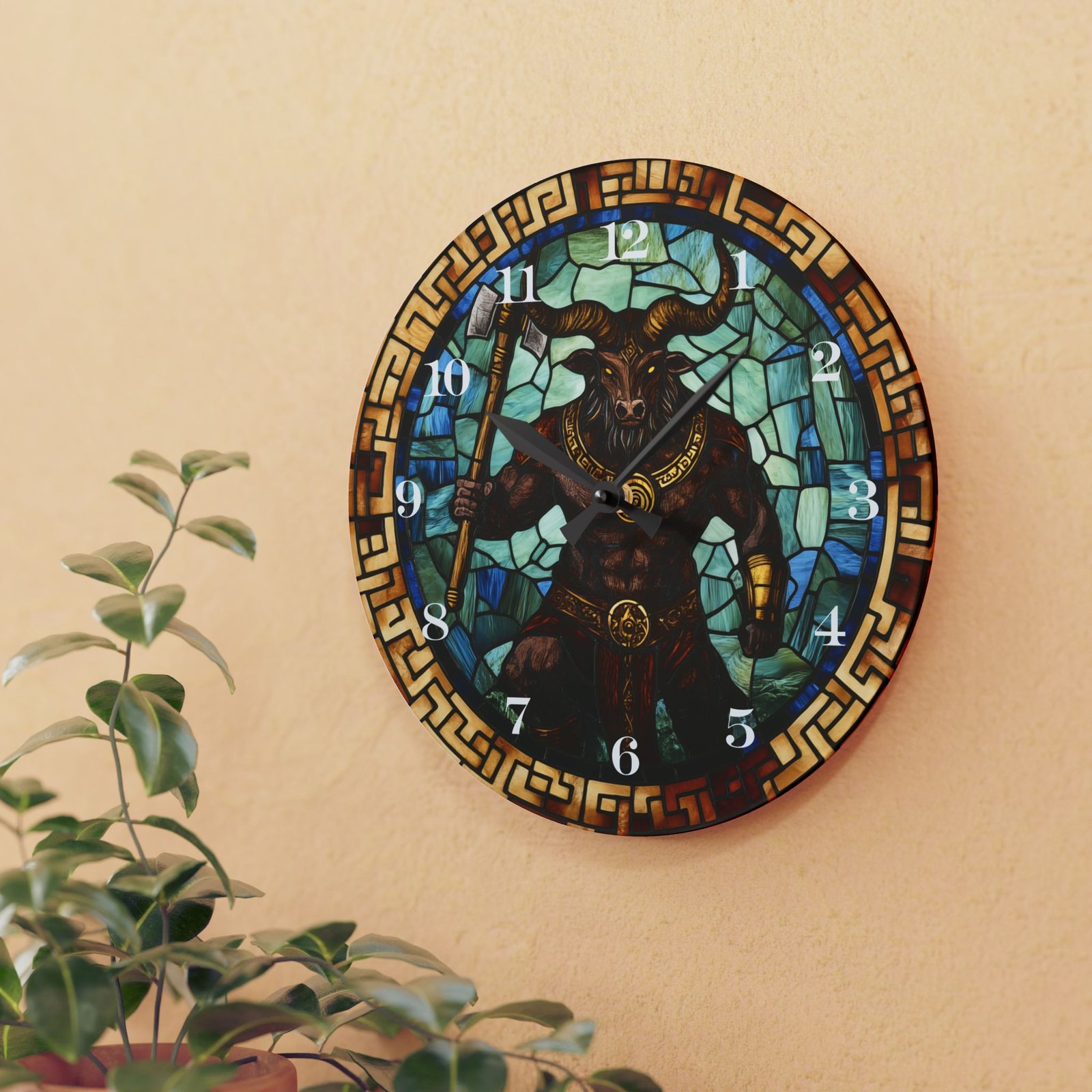 Command Time with Our Stained Glass-Style Minotaur Clock!