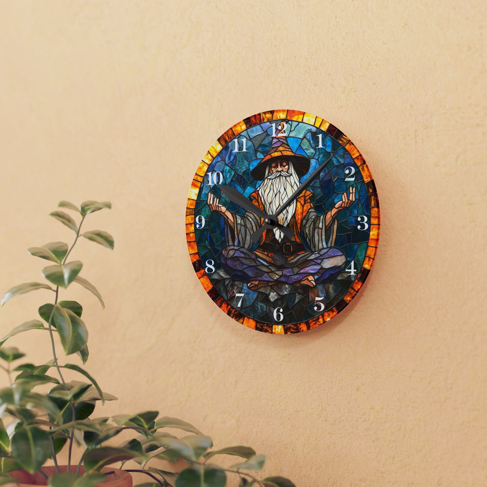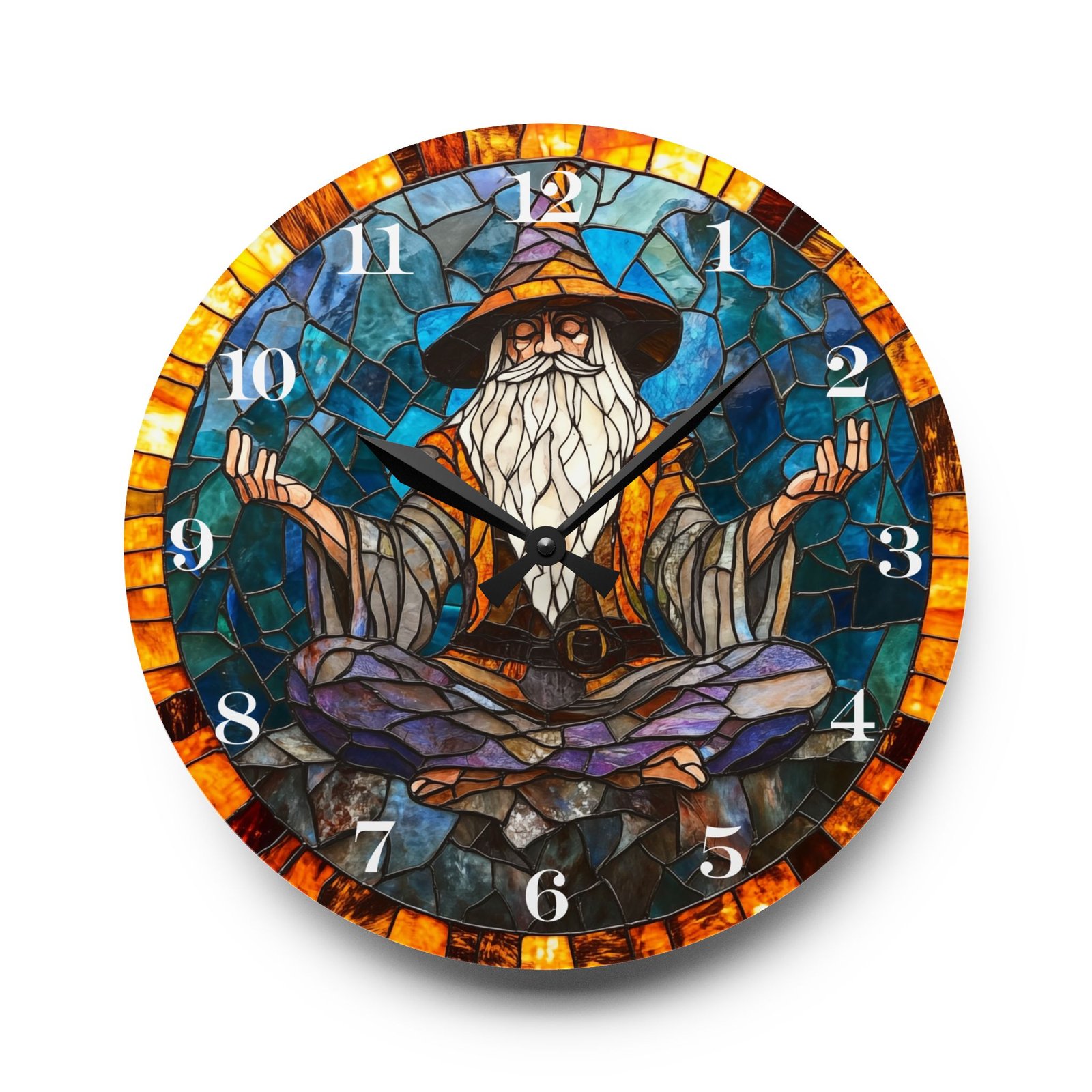 Channel the Mystical with Our Stained Glass-Style Meditating Wizard Clock! Crafted from durable acrylic that captures the beauty of glass, this unique clock brings timeless elegance and a sense of serenity to any space. Featuring a serene mage in deep meditation, it echoes ancient wisdom and mystical calm—perfect for adventurers seeking both style and a touch of the arcane in their lives.